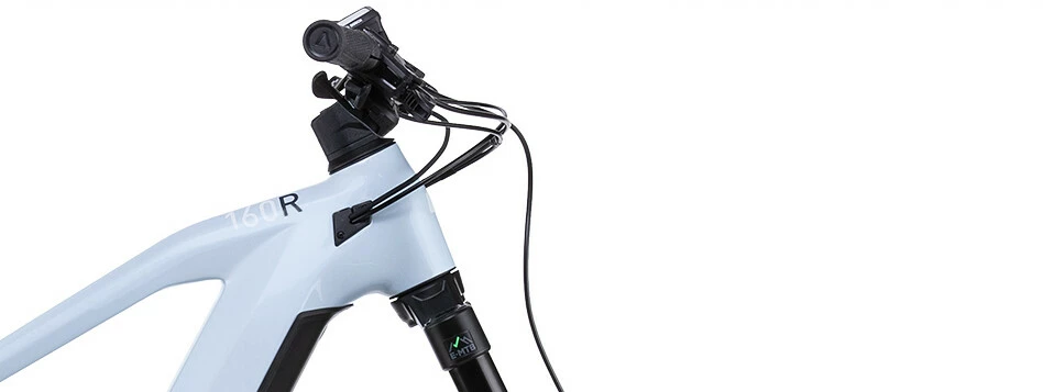 With the Stereo Hybrid 160 HPC Cube combined enduro-worthy levels of travel with Bosch’s e-bike capability into a single, stylish and extremely capable frame. The carbon main frame houses their Modular Battery System and fourth-generation Bosch drive unit entirely inside the down tube. Hidden by a cover with shock protection, push-button access and a hidden lock, the battery is both secure and easy to access. There’s even space for a bottle cage mount. The trunnion shock mount, oversize linkage bearings, Boost 148 rear end and 1.5in head tube all contribute to accurate tracking, even when it’s all coming at you thick and fast. And sorted, race-inspired geometry gives you the advantage you need to show the trail exactly who’s boss.